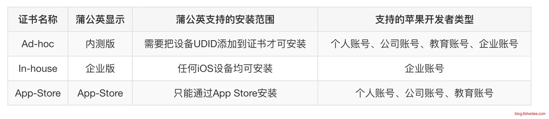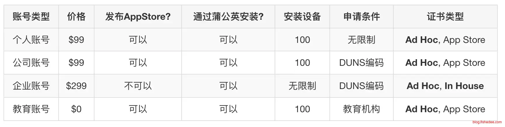 开发者有四种类型,注意按照是否上AppStore的不同来决定使用哪种账号。