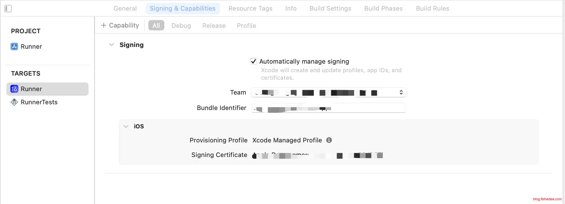 在合规情况下,苹果只允许使用XCode来打包iOS的App。在XCode上开发也很方便,在勾选Automatically manage signing以后,只需要输入AppleİD的账号密码,XCode就能自动处理Certificate证书和Provisiong Profile。