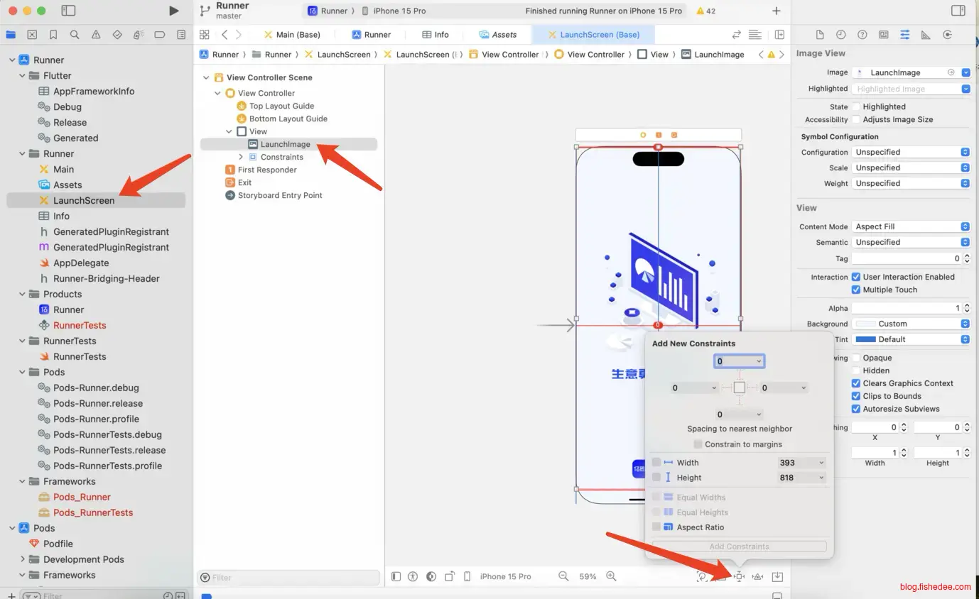 然后在LaunchScreen的StoryBoard设置一下constraint就可以了。