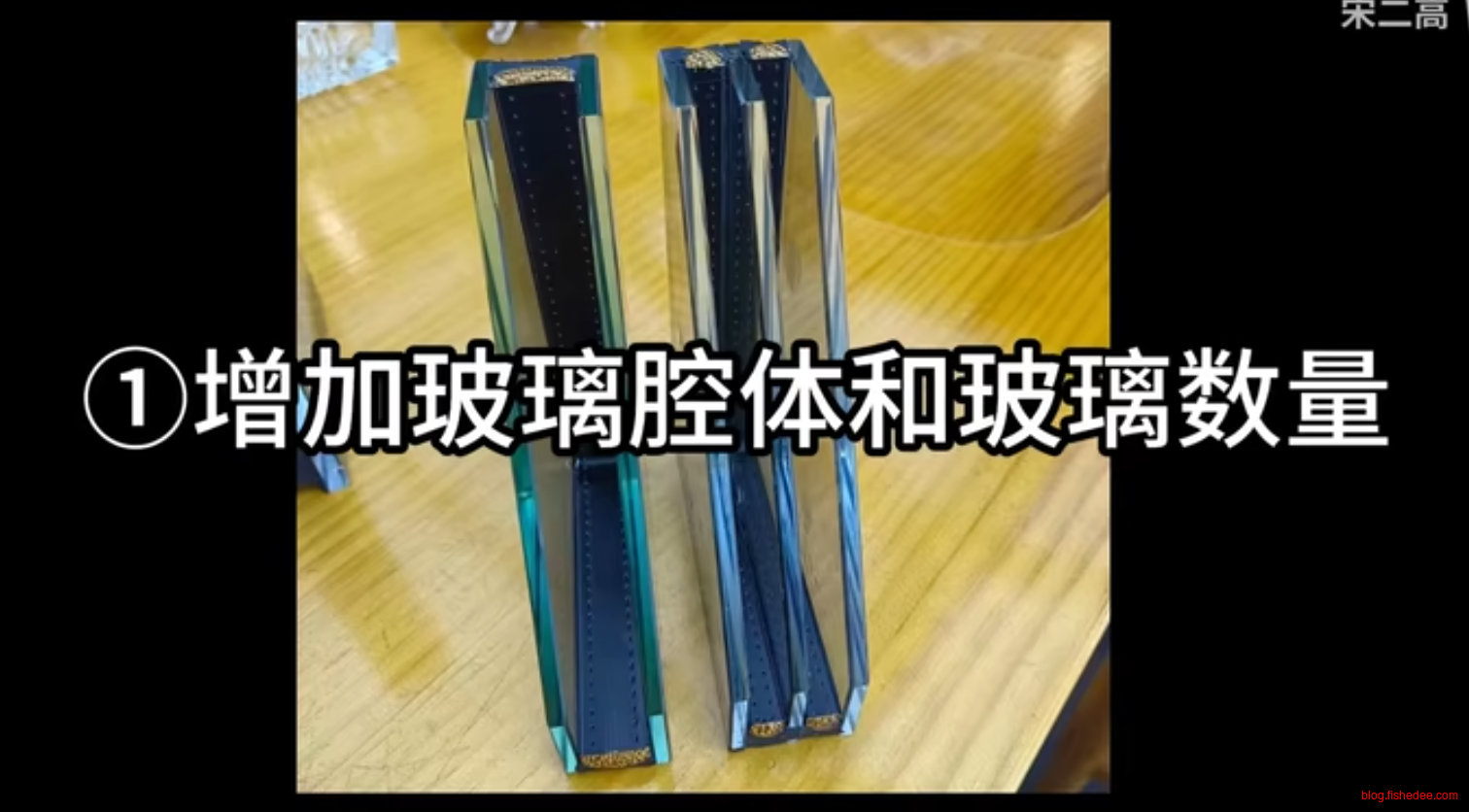 - 真空玻璃,造价昂贵,容易断裂,中间使用颗粒连接在一起,寿命较短。