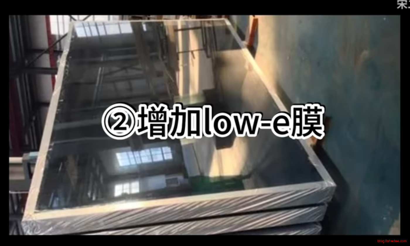 - 增加low-e膜,反射阳光中的红外线和热量,增加low-e膜能显著降低K值约20%。