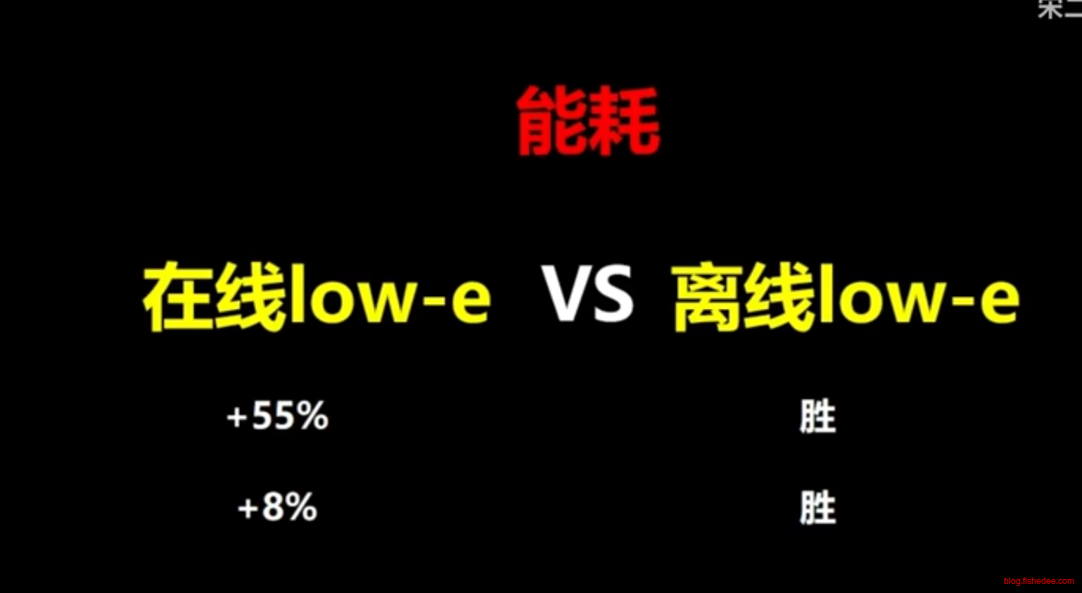 离线low-e玻璃成本较高,容易氧化,但是隔热性能更好。在线low-e玻璃膜能耗比离线low-e膜夏天大概能高55%,冬天大概能高8%。家装中90%使用的都是离线low-e玻璃,隔热性能较好,但是需要搭配中空使用。
