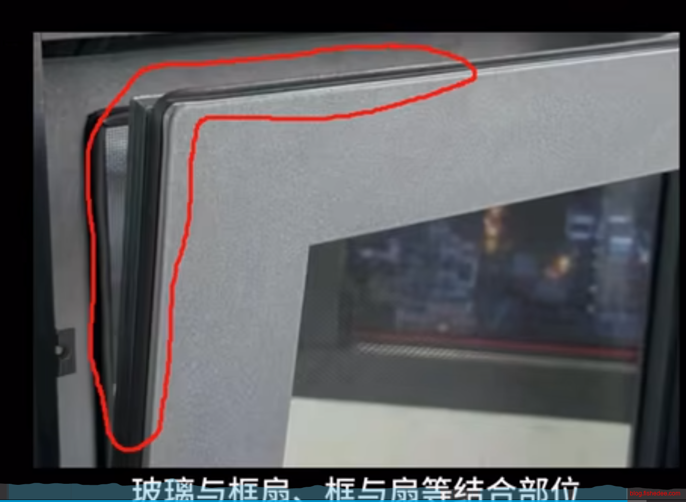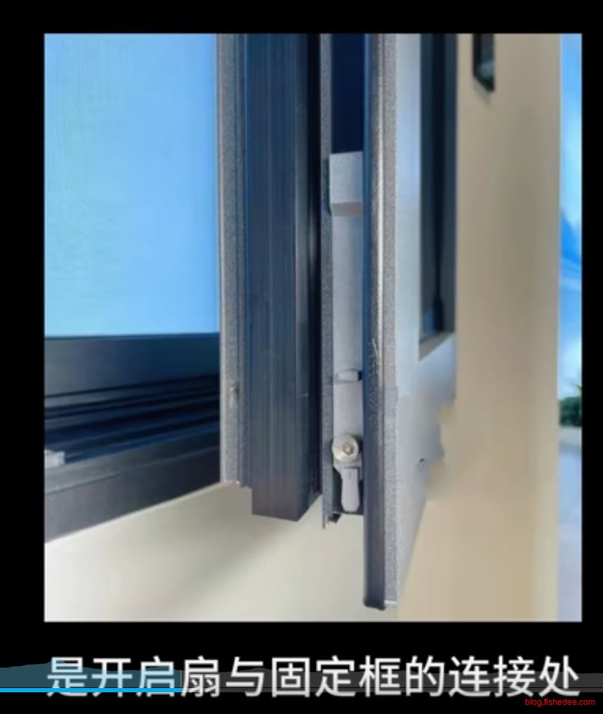 主要看开启扇与固定框的连接处。
