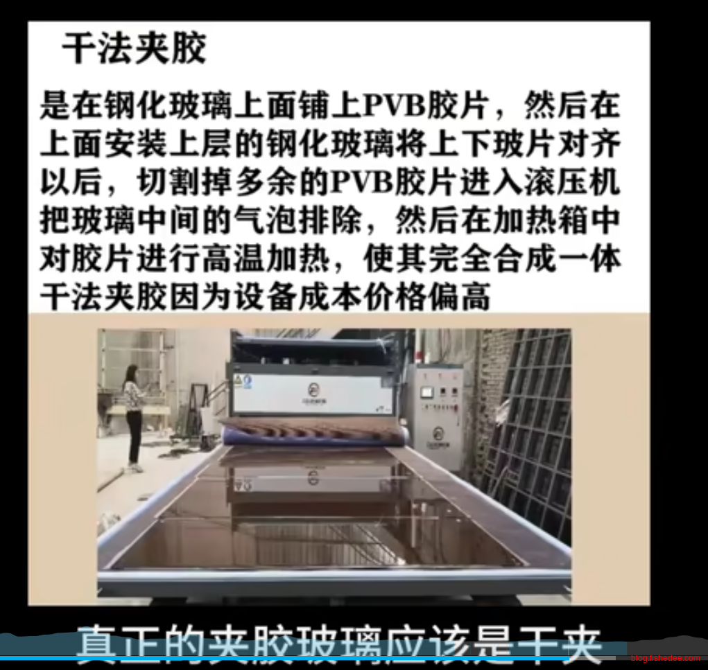 - 干夹,真正的夹胶玻璃,将PVB胶片放在两块玻璃中间,然后高压热熔