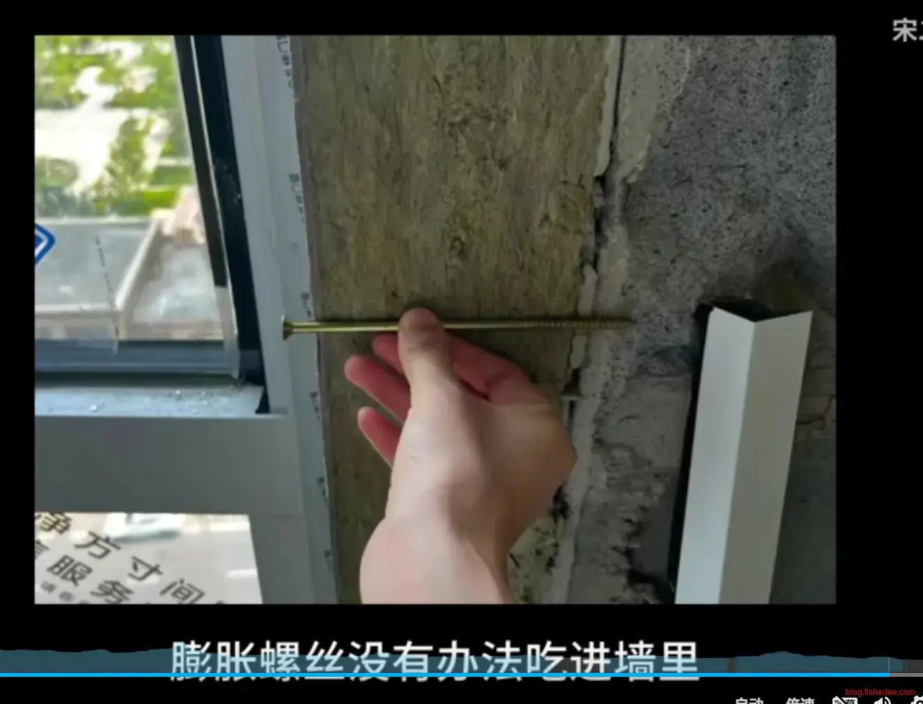 窗框与洞口的连接,注意不能安装在外墙的保温层上,膨胀螺丝没有办法吃进墙里。膨胀螺丝的入墙深度最好在3-4厘米以上。